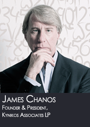 Jim Chanos is the founder and Managing Partner of Kynikos Associates LP. As the world's largest exclusive short selling investment firm, Kynikos Associates LP provides investment management services for domestic and offshore clients. Through investment funds, partnerships, corporations, and managed accounts - domestic and offshore - Kynikos Associates LP maintains private portfolios of securities for clients. The Ursus, Kriticos and Kynikos Opportunity funds seek to profit from the unusually high alphas found on the long and short side of the U.S. and non-U.S. equity markets.